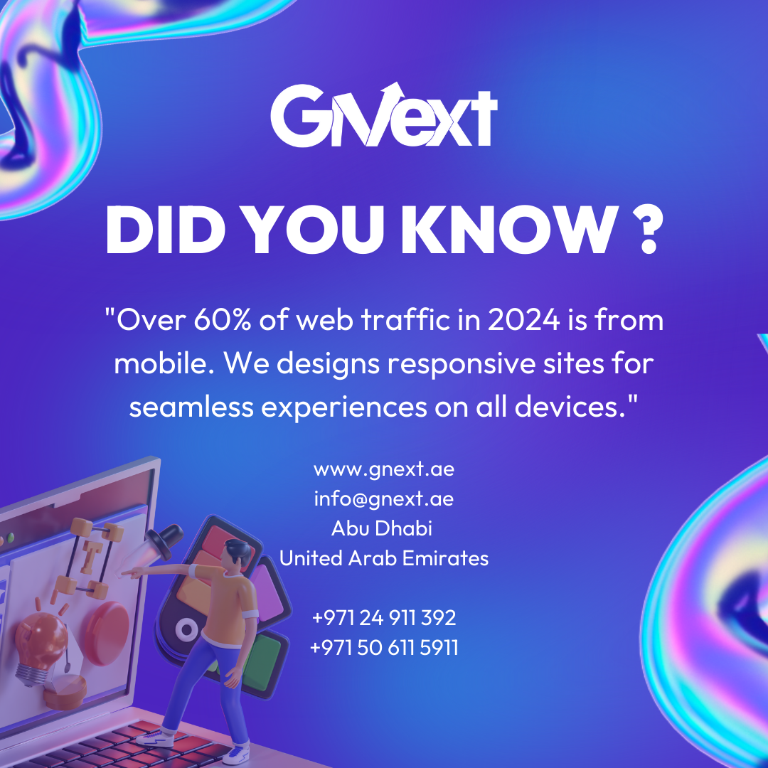 At GNEXT Tech Branding Services, based in Abu Dhabi, UAE, we specialize in professional Website Design, Website Development, and SEO consulting services tailored to boost your brand’s online presence. Our expert team creates dynamic, user-friendly websites that engage and convert visitors. We are into website maintenance services too, redesign, website hosting, content optimization, and redesigning your website. With our local SEO strategies, we help your business rank higher in Abu Dhabi search results, attract targeted traffic, and achieve sustainable growth. Whether you need a responsive e-commerce site or customized SEO solutions, GNEXT is here to drive results that matter. Transform your digital footprint with GNEXT – contact us today!